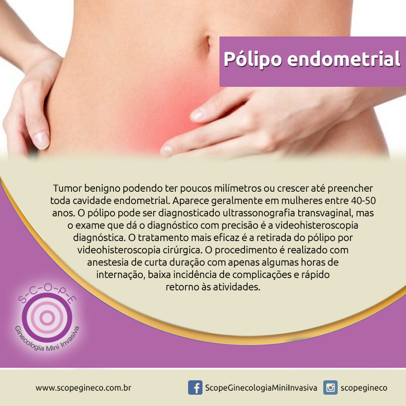 O tratamento para pólipo endometrial pode ser feito através de cirurgia com a remoção do pólipo polipectomia ou por meio de terapia hormonal com progestágenos. Quero que você possa visualizar aquilo que seu corpo vem passandoToda doença precisa antes de um ambiente propicio para se estabelecer- Um corpo ácido-. Na cirurgia os pólipos.