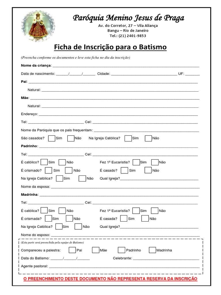 Ficha De Inscricao Para O Batismo Pdf Padrinho Madrinha Batismo