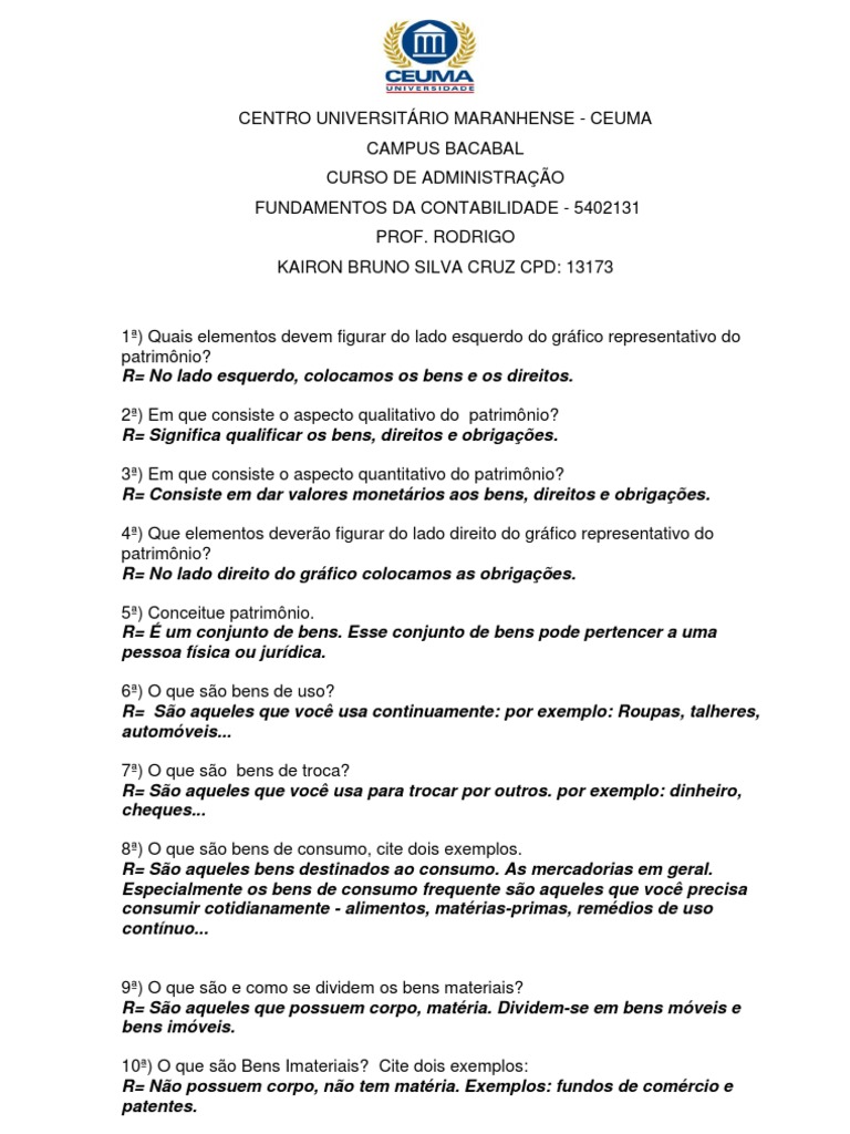 Sao todo o patrimônio material que o individuo possa ter como por exemplo casascarrosterras e etcPode ser dividido entre os parentes mais próximos filhos netos esposo a o pode ficar com o governo a partir do momento em que essa pessoa vai a óbito não tendo nenhum parentesco. Pergunta 8 025 em 025 pontos Os usuários da contabilidade e também dos demonstrativos contábeis dividem-se em doi grupos. Como o próprio nome diz são aqueles que possuem formas ou corpo-matéria.