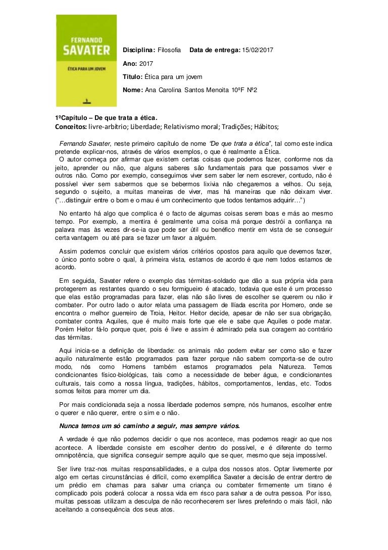 Resumo Etica Para O Meu Filho Fernando Savater Pdf Moralidade Liberdade