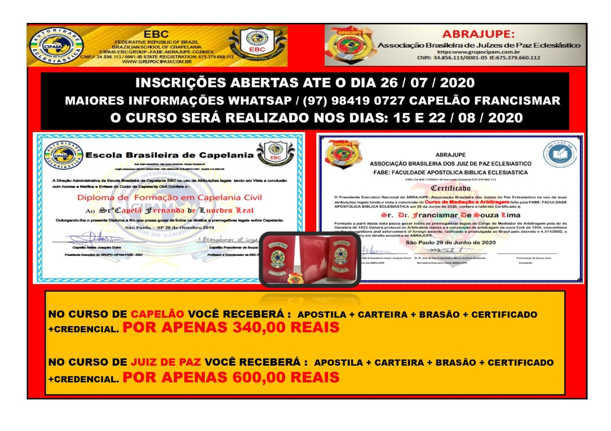 Cursos Capelania Juiz De Paz Juiz Arbitral Teologia Curso De Juiz De Paz A Distancia Campinas Sp R 250 Acre Alagoas Amapa Amazonas Bahia Ceara Distrito Federal Espirito Santo Goias
