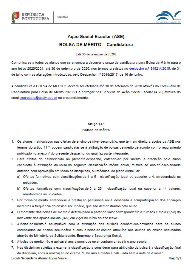 Bolsas De Merito Para Alunos Que Frequentam O Ensino Secundario